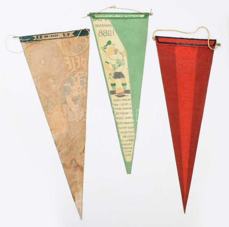3 db régi dél-amerikai futball zászló, vegyes állapotban, 45×19 cm https://www.darabanth.com/hu/43-Nagyaukcio/43.1/Tortenelmi-dokumentumok-keziratok/Tortenelmi-dokumentumok-keziratok-erdekessegek~17885/3-db-regi-del-amerikai-futball-zaszlo-vegyes-allapotban-45C39719-cm~II3228853
