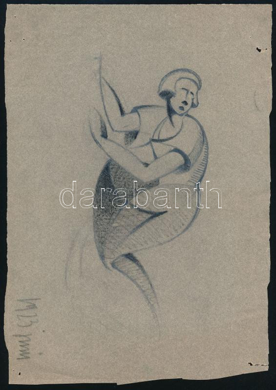 Leírás: Galambos Margit (?-?): Art deco női alak, 1923. Kréta, pauszpapír, jelzés nélkül, autográf datálással, 25x17 cm