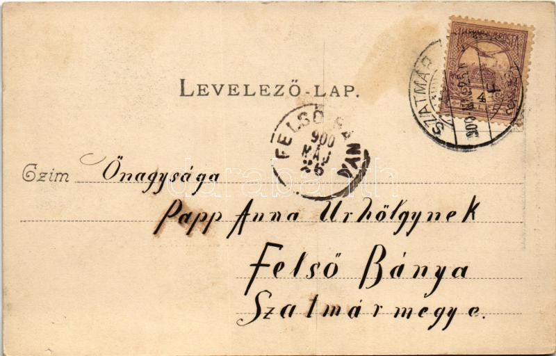 1900 Szatmárnémeti, Szatmár, Satu Mare; Római katolikus főgimnázium, Deutsch, Spitz S. és Társa üzlete, Református főgimnázium. Reizer János kiadása / Catholic grammar school, shops, Calvinist grammar school (kis szakadás / small tear)