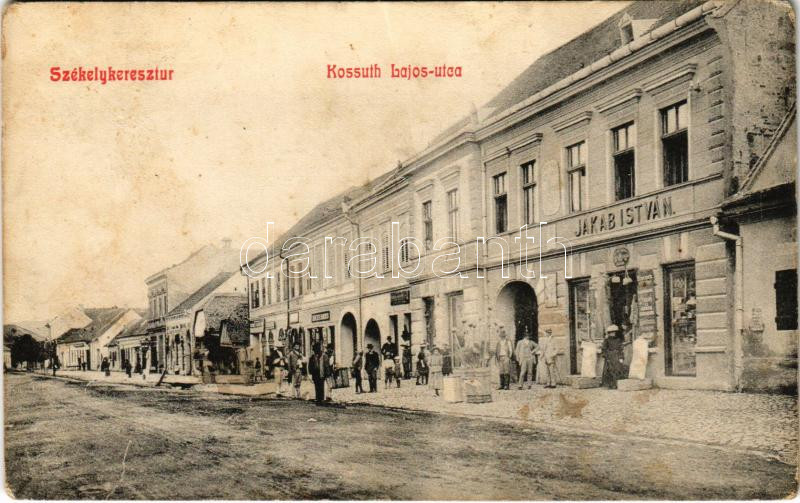 1909 Székelykeresztúr, Cristuru Secuiesc; Kossuth Lajos utca, Jakab Is... https://www.darabanth.com/hu/430-Gyorsarveres/430.0/Kepeslapok/Erdely~1500005/1909-Szekelykeresztur-Cristuru-Secuiesc-Kossuth-Lajos-utca-Jakab-Istvan-uzlete-es-sajat-kia~II2760568