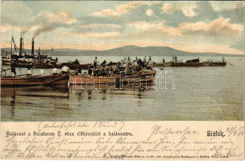 1904 Siófok, Halászat a Balatonon II. rész. Előkészület a halászatra. ... https://www.darabanth.com/hu/430-Gyorsarveres/430.0/Kepeslapok/Magyarorszag~1500004/1904-Siofok-Halaszat-a-Balatonon-II-resz-Elokeszulet-a-halaszatra-Ellinger-Ede-cs-es-ki~II2761706