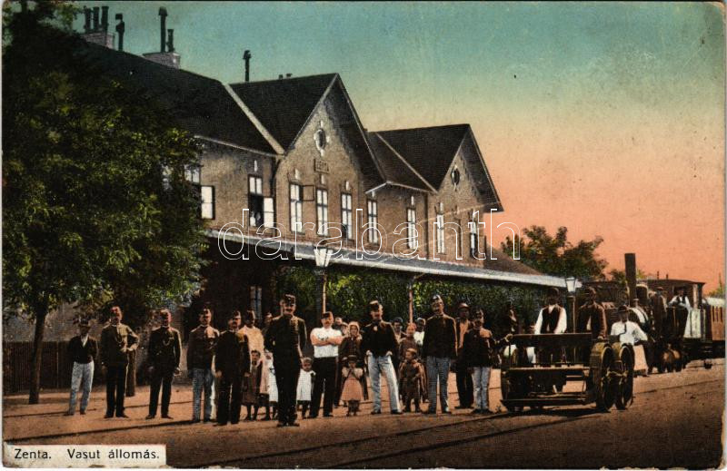 1918 Zenta, Senta; Vasútállomás, vasutasok, hajtány, gőzmozdony, vonat... https://www.darabanth.com/hu/430-Gyorsarveres/430.0/Kepeslapok/Vajdasag~1500010/1918-Zenta-Senta-Vasutallomas-vasutasok-hajtany-gozmozdony-vonat-Politzer-Sandor-kiada~II2762255