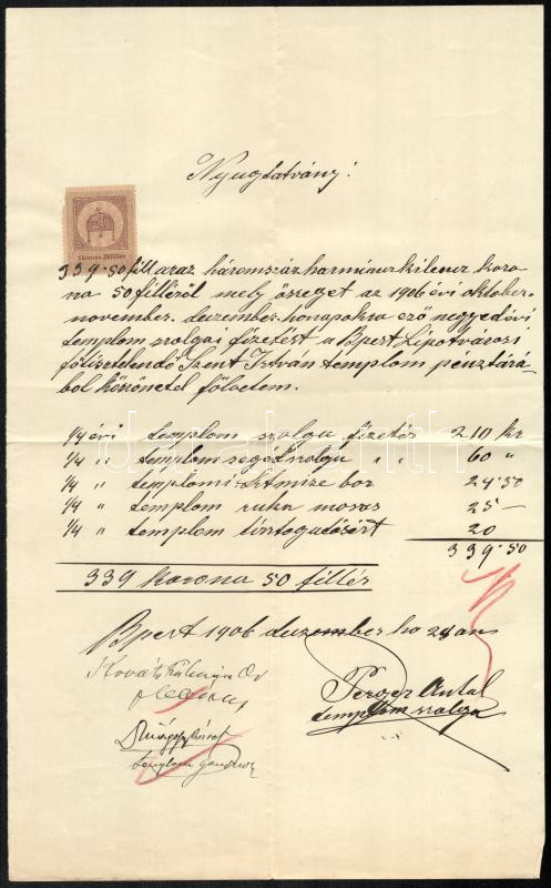 Leírás: 1906 Nyugta sarokhibás 1K26f okmánybélyeggel