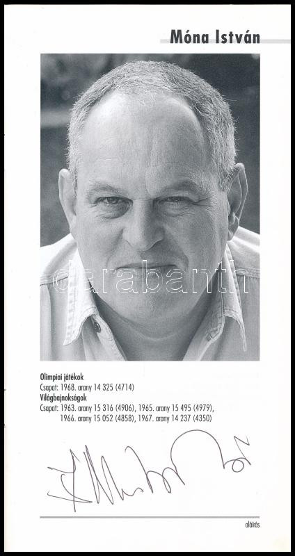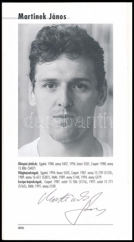 Benne Kovácsi Aladár (1932-2010), Németh Ferenc (1936-), Móna István (1940-2010), Martinek János (1965-) olimpiai bajnokok aláírásaival, valamint Kovácsi Aladár DEDIKÁCIÓjával Kertész Alíz (1935-) olimpiai bajnok tornász, edző részére.
