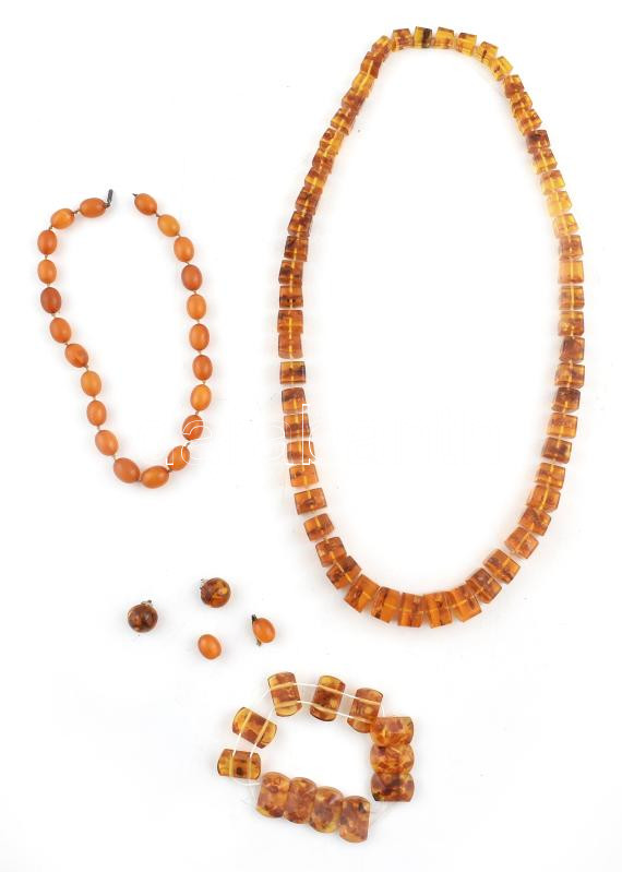 Leírás: Borostyán jellegű nyakláncok elszakadva
