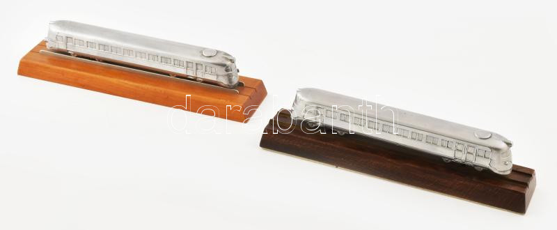 Leírás: Ganz-Mávag. Mozdony-, Vagon és Gépgyár Budapest. Alumínium, fa talapzaton, 2db, egyik jelzett, h: 25 cm