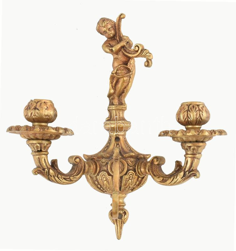 Leírás: Figurális gyertyatartó és ruhafogas egyben, tűziaranyozott bronz, szép állapotban, 18x16 cm