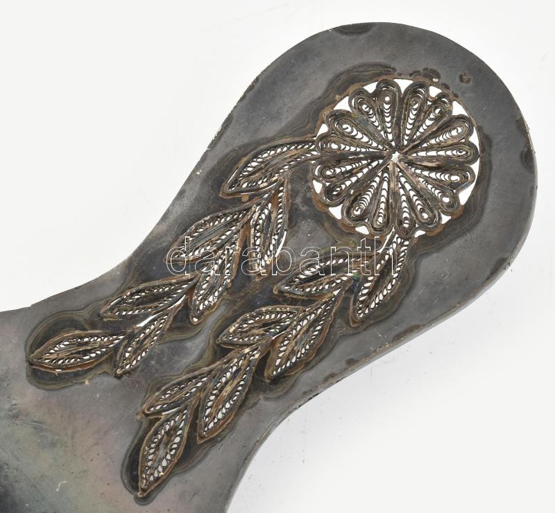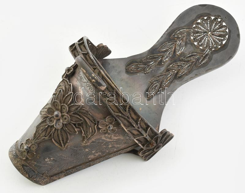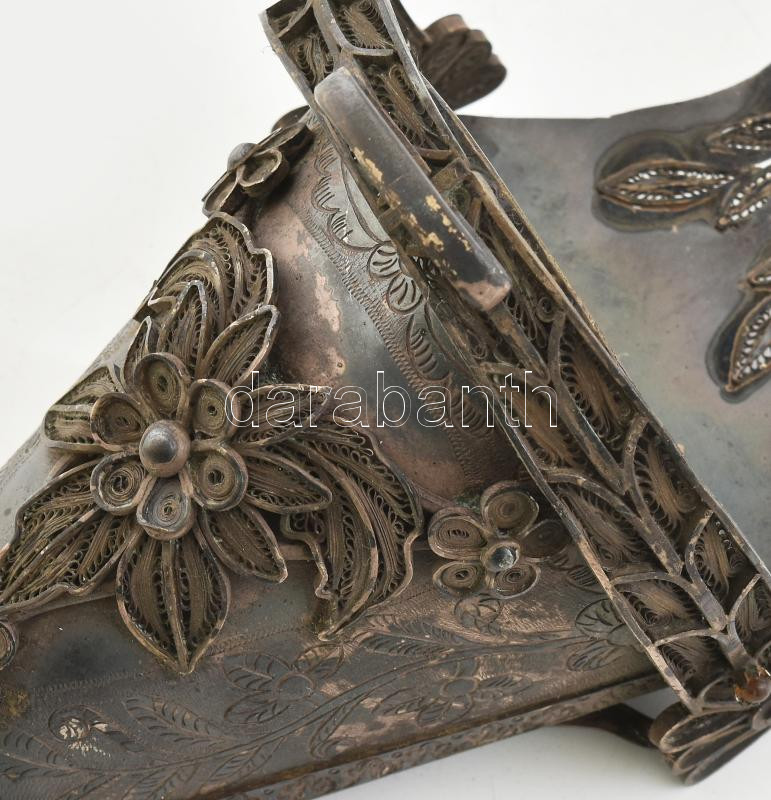 Leírás: Régi filigrán fali kaspó, jelzés nélkül, kopott, kis sérülésekkel, m: 20 cm