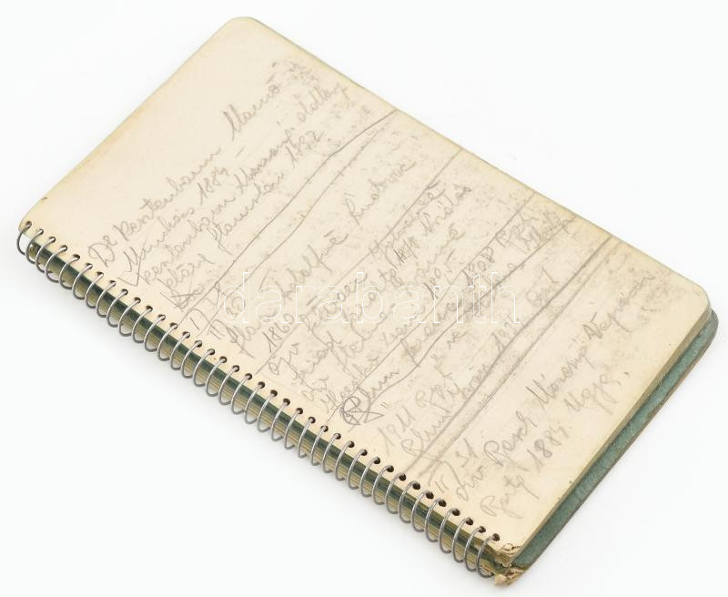 cca 1940-1945 Jegyzetfüzet mindenféle bejegyzésekkel: izraelita személyek névsora és adatai Kammermayer utcai ékszerüzlet háború utáni kárainak felmérése. stb