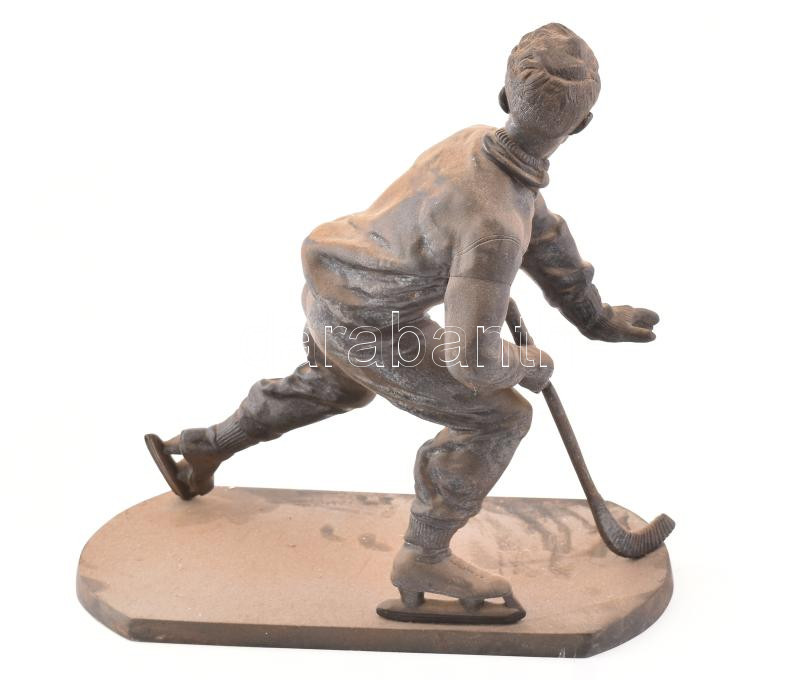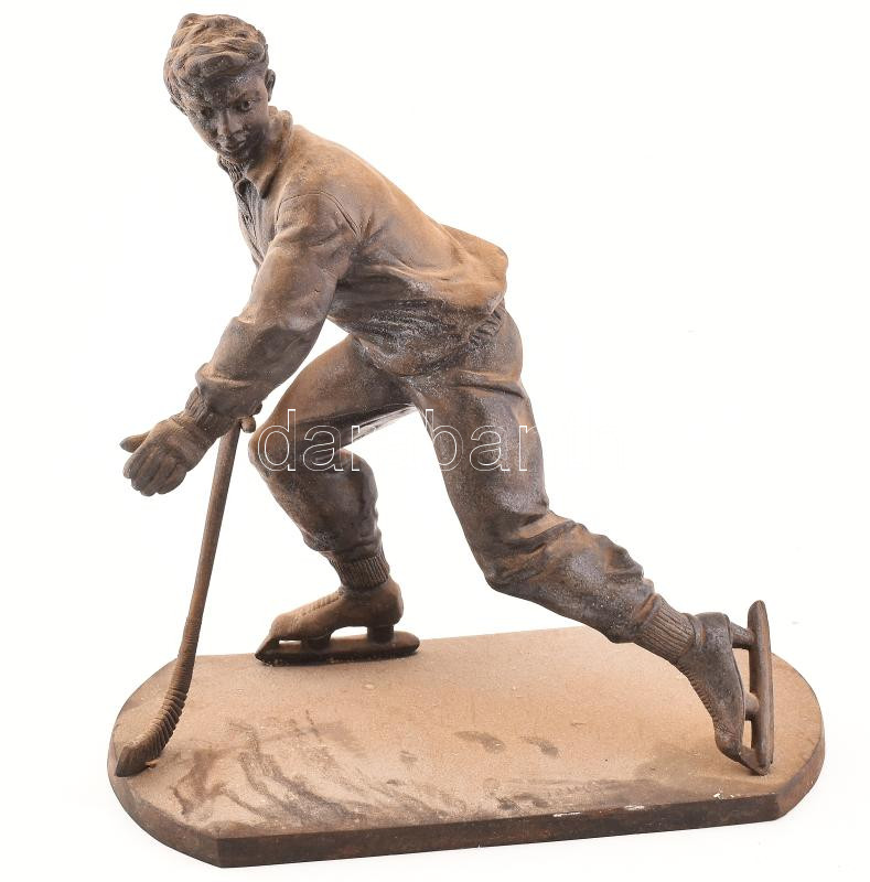 Leírás: Ismeretlen szovjet művész: Jéghokis. Öntöttvas. Jelzett. 1950 körül. m: 36 cm