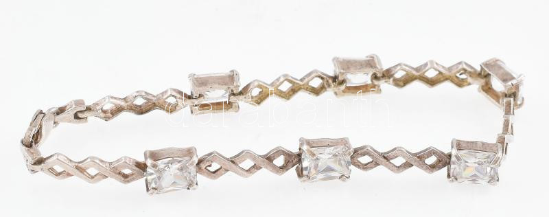 Leírás: Ezüst (Ag) fehér köves karkötő, jelzett, bruttó: 13,3 g, h: 19,5 cm