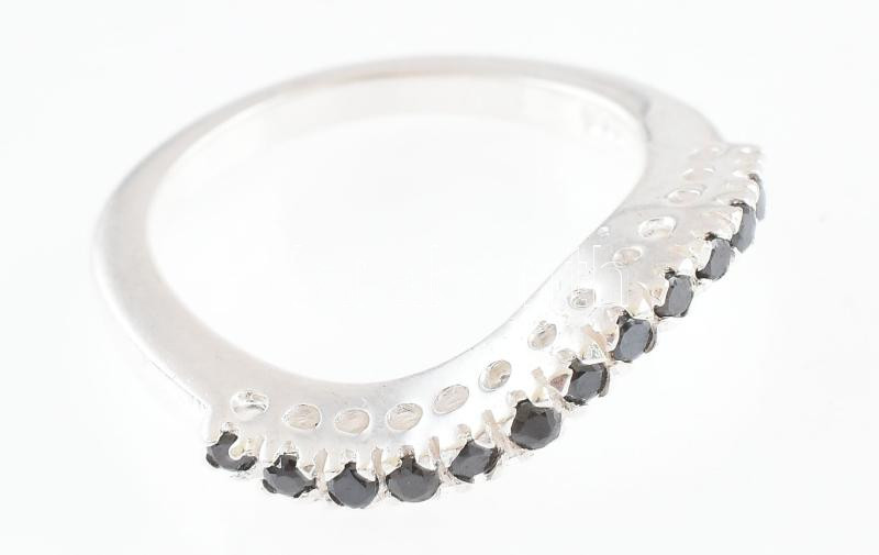 Leírás: Ezüst (Ag) gyűrű fekete kövekkel, jelzett, bruttó: 4 g, m: 57
