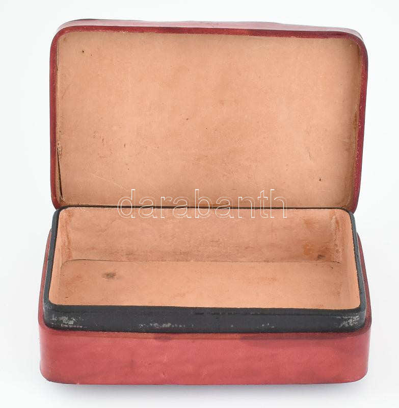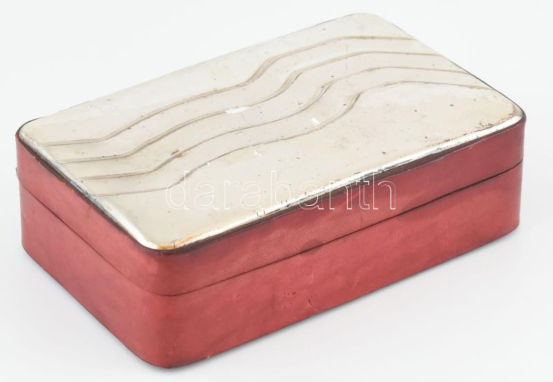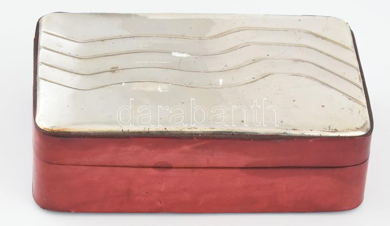 Leírás: Ezüst lappal fedett bőr doboz. Jelzett. 16x10 cm