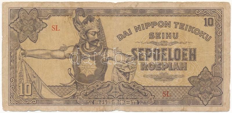 Netherlands East Indies / Japanese Occupation ND (1944) 10 Roepiah C:VG material error