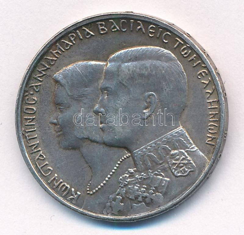 Görögország 1964. 30Dr Ag "II. Konstantin és Anna-Mária esküvője" Kongsberg-i verde T:2 patina Greece 1964. 30 Drachmai Ag "Constantine and Anne-Marie wedding" Kongsberg mint C:XF patina Krause KM#87