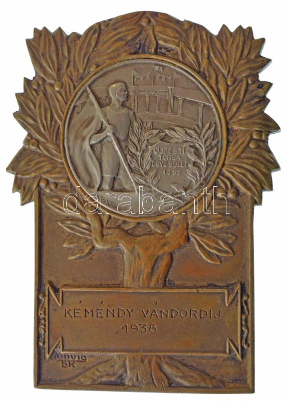 1938. "Kéméndy Vándordíj 1938" bronz díjplakett (62x86mm) "Újpesti Torna Egyesület 1885" ezüstözött bronz betéttel (35mm), mindét részén "Ludvig" gyártói jelzéssel. Kéméndi Ernőről, az Újpest első atlétikai bajnokáról nevezték el vándordíjat. Vezetékneve eredetileg i-re végződött, ám egy elírás következtében első sikerei idején Kéméndyként írták le, így részben kabalából, részben sporttevékenységének a tanári hivatásától való megkülönböztetése céljából sportszerepléseiben megtartotta. Kéméndi 1906-ban, 1907-ben és 1909-ben is bajnok lett, utóbbi évben Csehországban is. Emellett futballbíró és mesterfokú sakkozó volt, illetve az I. világháborút is megjárta, az első naptól egészen 1918-ig. T:1-,2