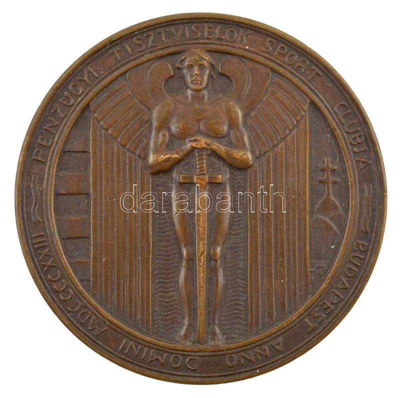 Martinelli Jenő (1886-1949) ~1920. "Pénzügyi Tisztviselők Sport Clubja - Budapest anno domini MDCCCXXIII" bronz sportérem, hátoldalán "1928. VIII. 4." gravírozással (46mm) T:2 kis ph.