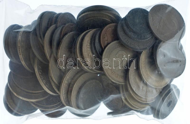 Vegyes, főleg magyar és román érmetétel mintegy ~0,5kg súlyban, közte Románia 1942. 5L Zn (~25db) T:vegyes Mixed, mostly Hungarian and Romanian coin lot, within Romania 1942. 5 Lei Zn (~25pcs) (~0,5kg) C:mixed