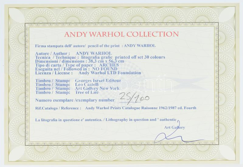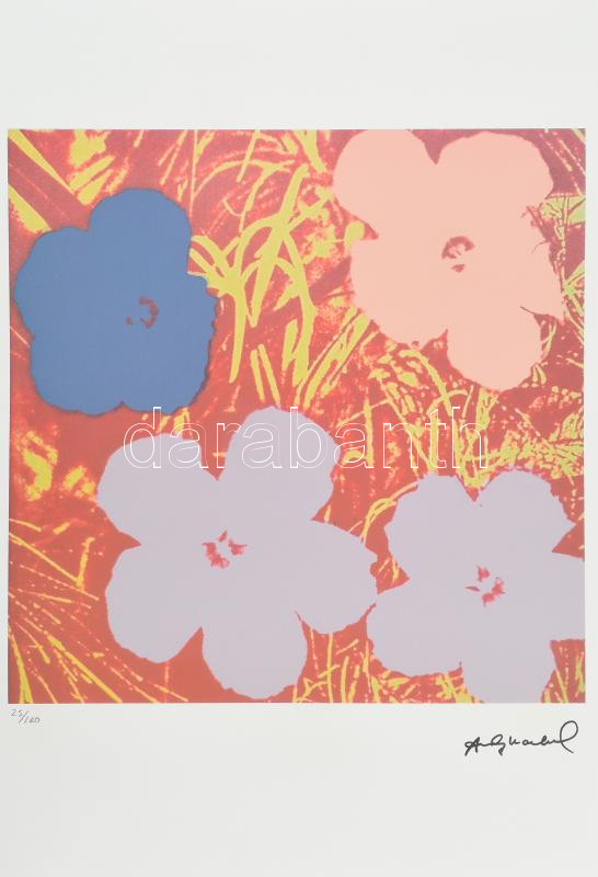 Andy Warhol (1928-1987): Flowers. Ofszet litográfia, papír. Sorszámozott: 25/100, jelzett a nyomaton. Georges Israel editeur szárazpecséttel is jelzett, tanúsítvánnyal. 36x236 cm / Lithography with attest