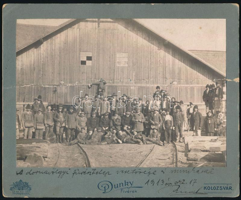 1913 Domavölgyi (Erdély) fűrésztelep fotó. Törésnyommal 18x16 cm https://www.darabanth.com/hu/431-Gyorsarveres/431.0/Fotomuveszet/Foto~5000024/1913-Domavolgyi-Erdely-furesztelep-foto-Toresnyommal-18x16-cm~II2773741