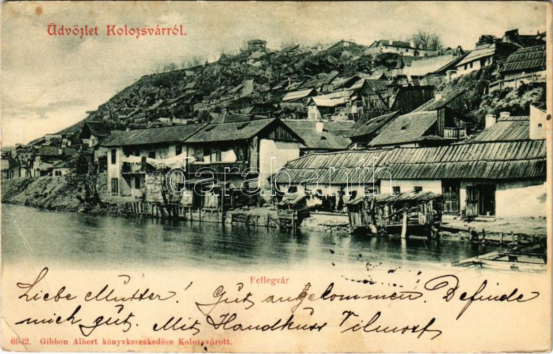 Leírás: 1900 Kolozsvár, Cluj; Fellegvár a Kis-Szamos mellett. Gibbon Albert kiadása / Cetatuia, Somesul Mic / riverside (EB)