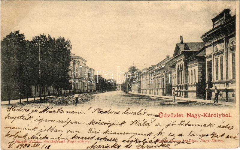 1900 Nagykároly, Carei; Fő utca. Huszty Zoltán fényképészet / main str... https://www.darabanth.com/hu/431-Gyorsarveres/431.0/Kepeslapok/Erdely~2000005/1900-Nagykaroly-Carei-Fo-utca-Huszty-Zoltan-fenykepeszet-main-street~II2769982