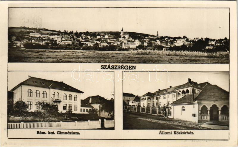 1944 Szászrégen, Reghin; látkép, Római katolikus gimnázium, Állami kór... https://www.darabanth.com/hu/431-Gyorsarveres/431.0/Kepeslapok/Erdely~2000005/1944-Szaszregen-Reghin-latkep-Romai-katolikus-gimnazium-Allami-korhaz-general-view-C~II2773185