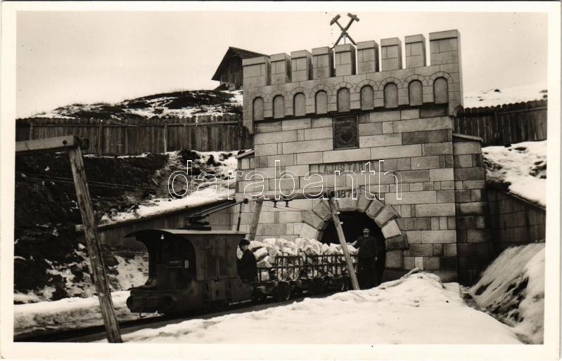 Désakna, Ocna Dejului; M. kir. sóbánya, bánya bejárata télen, Lajos tárna 1879, iparvasút, vonat / salt mine entry in winter, industrial railway, train