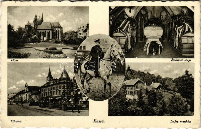 1939 Kassa, Kosice; Dóm, Rákóczi sírja, Fő utca, Lajos menház, Horthy Miklós fehér lovon, bevonulás / cathedral, tomb of Rákóczi, main street, rest house, Regent Horthy, entry of the Hungarian troops (EK)