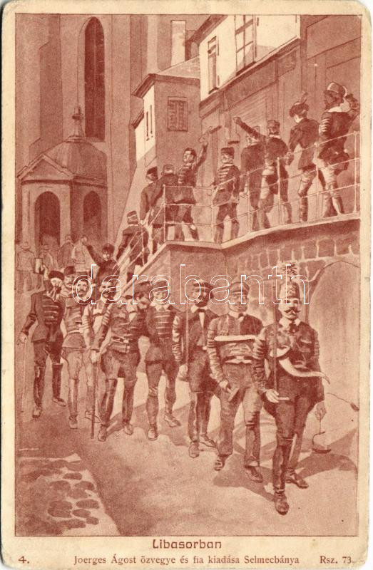 Selmecbánya, Schemnitz, Banská Stiavnica; Libasorban. Joerges Ágost özv. és fia 4. Rsz. 73. Tassonyi Ernő: Aki a párját keresi című selmeci diákéletből vett regényének illusztrációja / Studentica art postcard s: Mühlbeck Károly (EM)