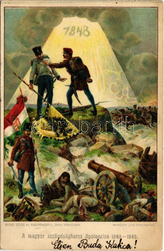 1908 A magyar szabadságharc apoteózisa 1848-1849. Bilkei Dezső és Radovánovics János / Hungarian War of Independence, Hungarian Revolution of 1848. Globus litho (kis szakadás / small tear)