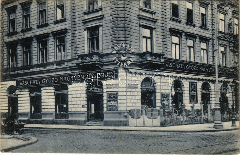 Leírás: 1911 Budapest VIII. Waschata Győző nagyvendéglője, étterem. József körút 46. (EK)