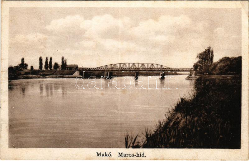 1926 Makó, Maros híd. Ifj. Gaál László kiadása (EK) https://www.darabanth.com/hu/431-Gyorsarveres/431.0/Kepeslapok/Magyarorszag~2000004/1926-Mako-Maros-hid-Ifj-Gaal-Laszlo-kiadasa-EK~II2771172