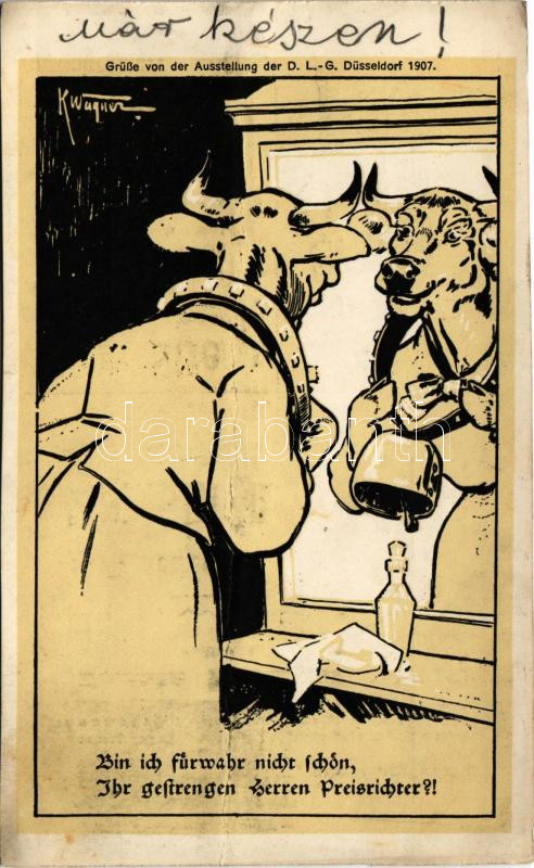Leírás: 1907 Grüsse von der Ausstellung der D.L.-G. Düsseldorf der Deutschen Landwirtschaftlichen Presse. Verlag von Paul Parey (EK)