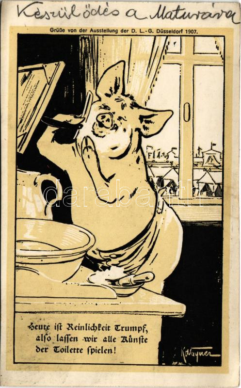 Leírás: 1907 Grüsse von der Ausstellung der D.L.-G. Düsseldorf der Deutschen Landwirtschaftlichen Presse. Verlag von Paul Parey (EK)