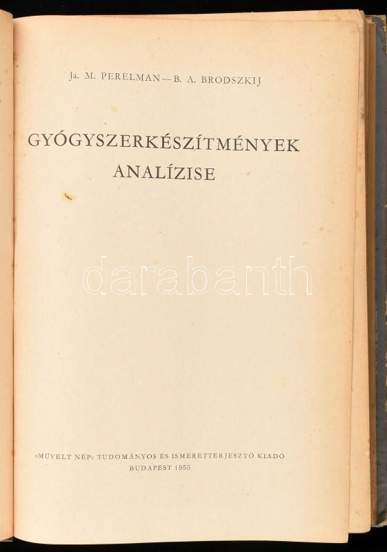 Ja. M. Perelman - B. A. Brodszkij: GyógyszerkészÃtmények analÃzise. Bp., 1955, Művelt Nép. Kiadói félvászon-kötés, kopott borÃtóval, néhány koszos, foltos lappal. Megjelent 1100 példányban.