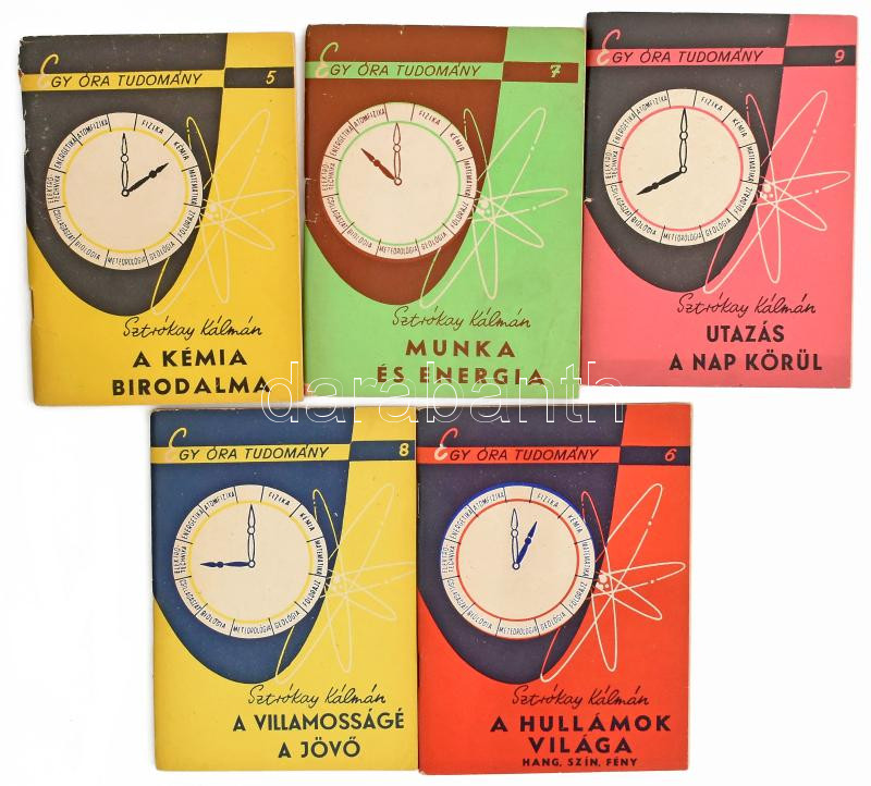 Sztrókay Kálmán: A kémia birodalma, A hullámok világa, Munka és energia, A villamosságé a jövő, Utazás a nap körül. 1958, Műszaki Könyvkiadó. Kiadói papírkötés, jó állapotban.