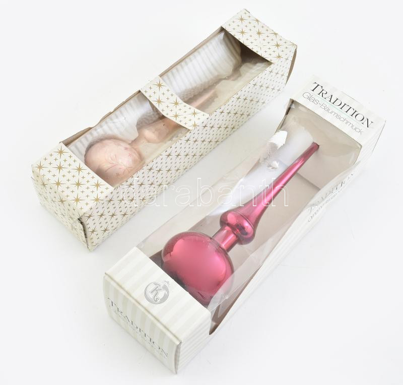 Leírás: 2 db tradicionális karácsonyfa csúcs dísz, dobozban, h: 25 cm