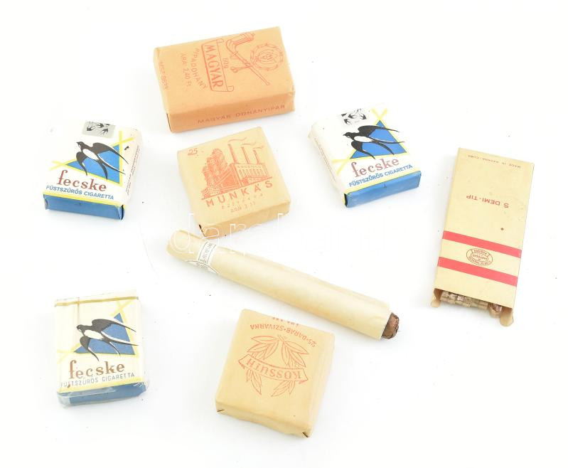 Leírás: 7 doboz vegyes régi bontatlan csomag cigaretta, szivarka, + 1 szivar