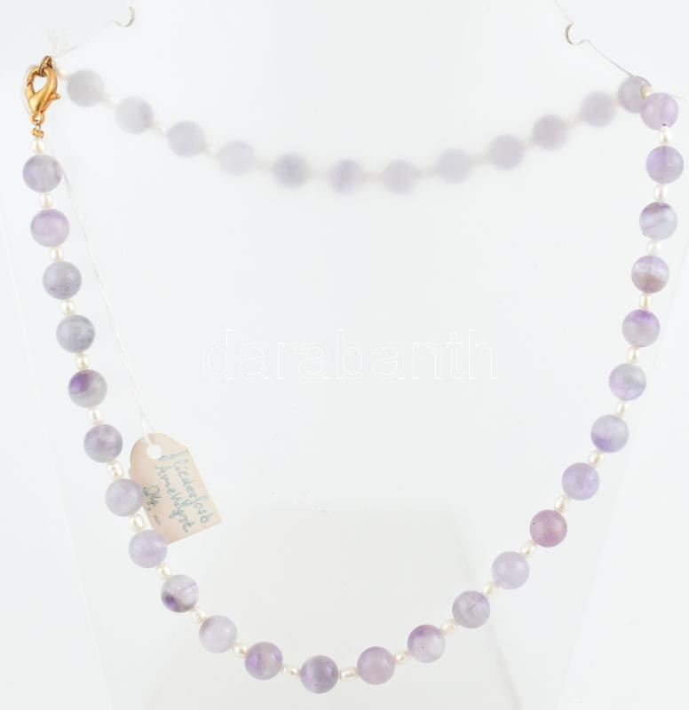 Leírás: Ametiszt és tenyésztett gyöngy nyaklánc, h: 46cm