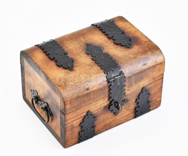 Leírás: Fadoboz, fém veretekkel, 16x12cm