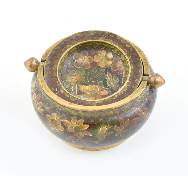 Leírás: Kínai rekeszzománc / cloisonne füstölő tartó, kopásokkal, m: 5 cm
