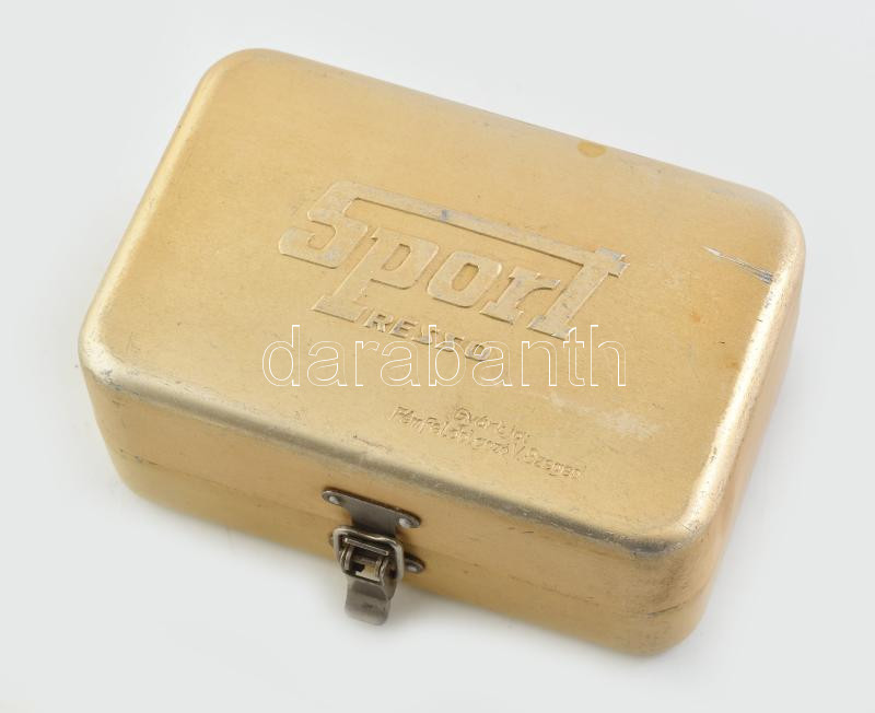 Sport Presso retró kávéfőző készlet, kétszemélyes (össz. 10 db). Gyártja: Fémfeldolgozó Vállalat, Szeged. Fém, eredeti dobozában, korának megfelelő állapotban, 14x9x6,5 cm