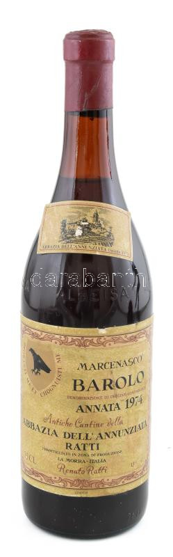 Leírás: 1974 Renato Ratti, Marcenasco Barolo, Antiche Cantine della Abbazia dell'Annunziata Ratti. Bontatlan palack olasz vörösbor, 0,75 l