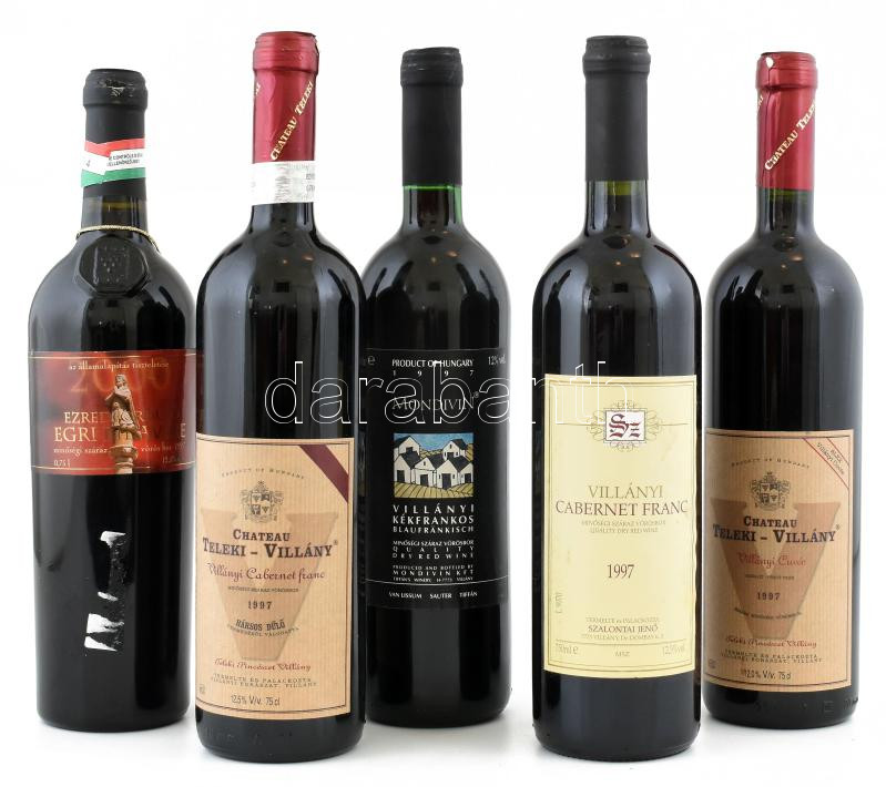 5 palack vegyes magyar vörösbor 1997: villányi, stb. https://www.darabanth.com/hu/431-Gyorsarveres/431.0/Mutargy-papirregiseg-egyeb/Muzealis-borok-italok~5000018/5-palack-vegyes-magyar-vorosbor-1997-villanyi-stb~II2774371