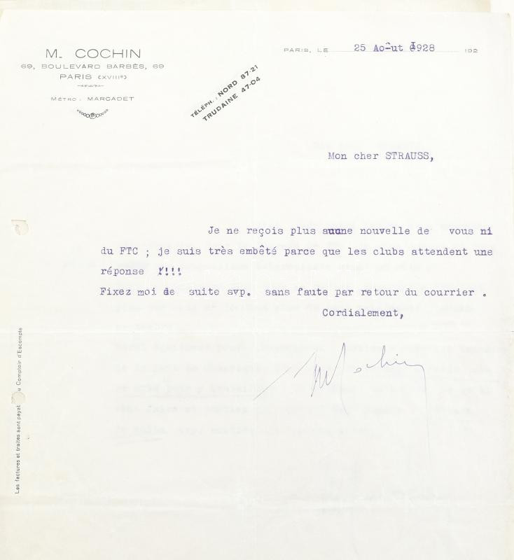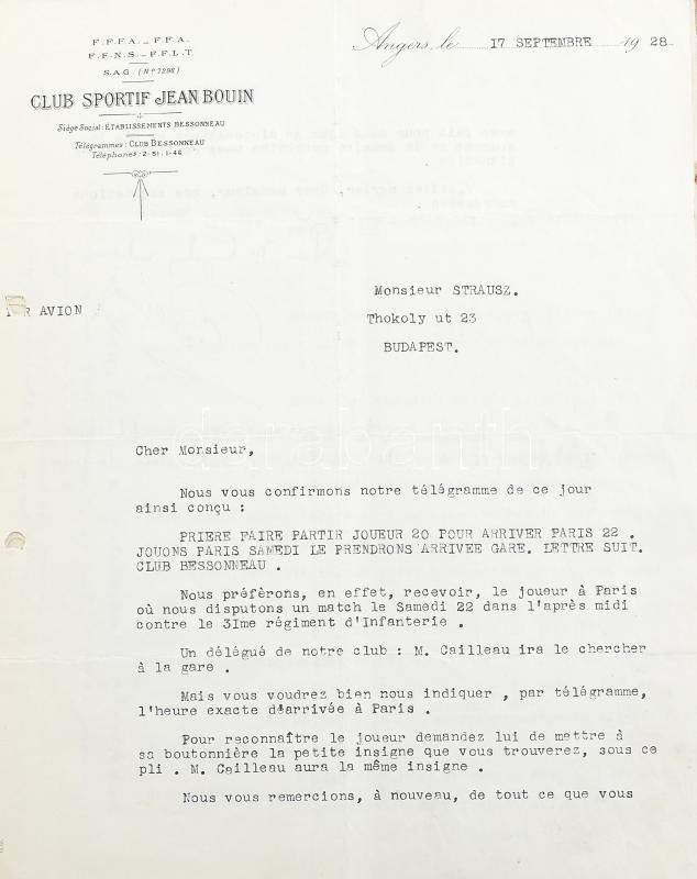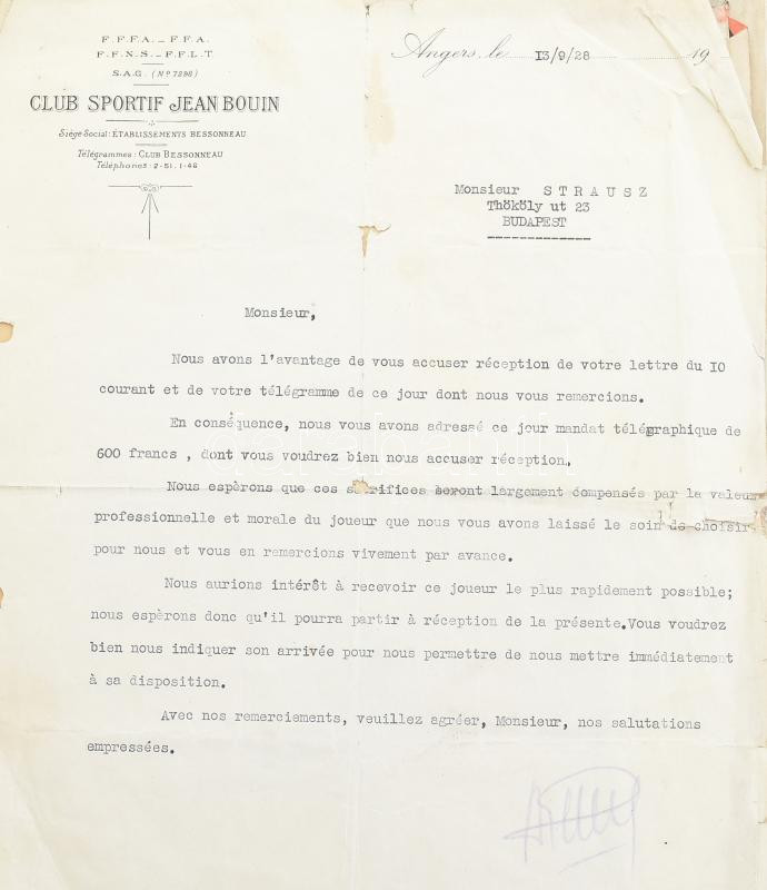 cca 1920-1930 Több mint 60 db levél és távirat néhány érdekes aláírással, mind futball témában, mérkőzések rendezése, játékosok kiajánlása főleg Franciaországba