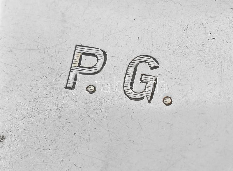 Leírás: Ezüst (Ag) cigaretta tárca, Payer Gizella képzőművész monogramjával, cca 1930, jelzett, 7×9 cm, 85 g