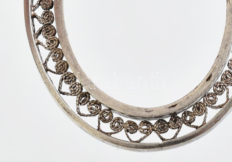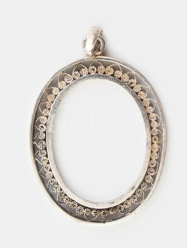 Leírás: Ezüst (Ag) filigrán képtartós medál, jelzett, h: 4 cm, nettó: 5,77g