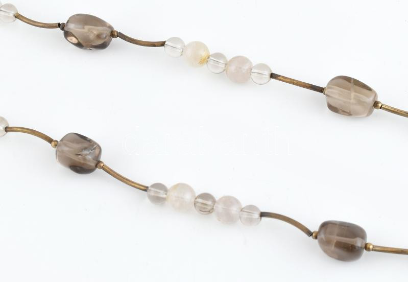 Leírás: Ezüst (Ag) nyaklánc, rutillal és füstkvarccal, jelzés nélkül, h: 116cm, bruttó: 100g