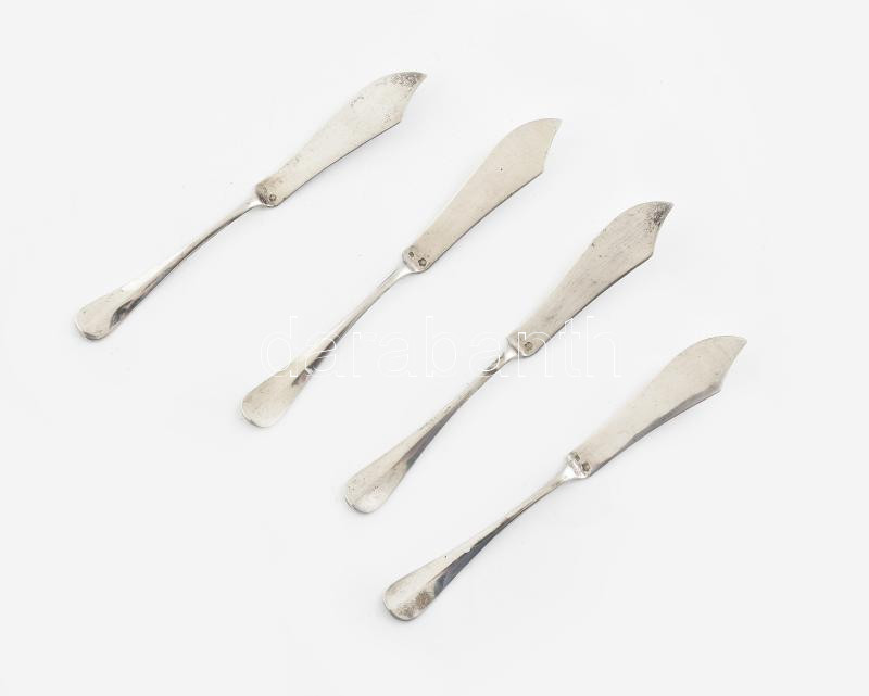 Leírás: Ezüst (Ag) vajkés, 4 db, jelzett, h: 14 cm, nettó: 65 g